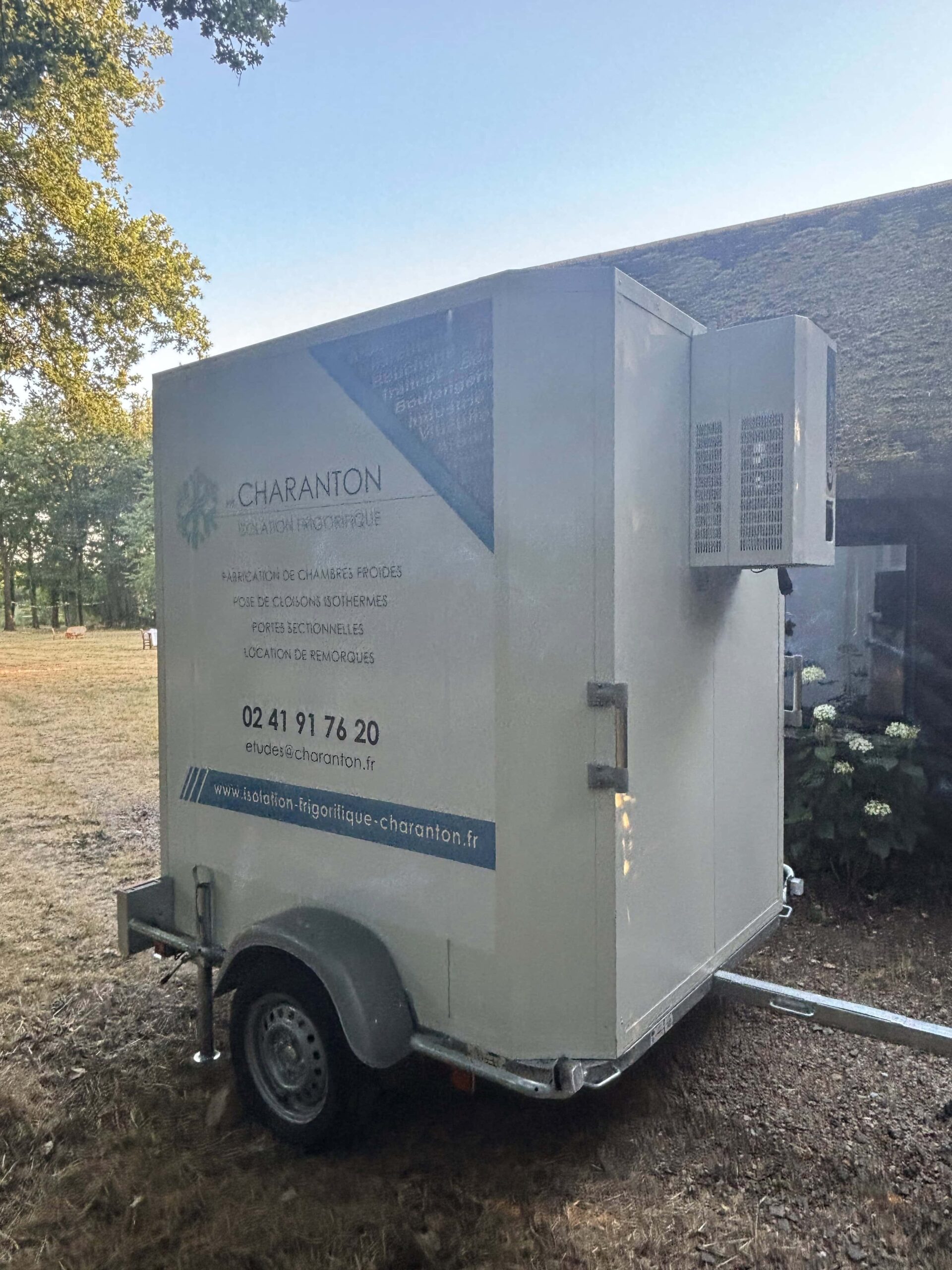 Remorque frigorifique 1,50 m x 1,70 m, idéale pour tous types d’événements, qu’ils soient professionnels ou privés.